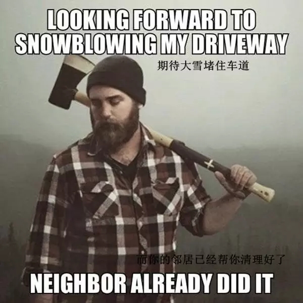 2. 加拿大人都是"做好事儿狂人"!!! 一下完雪就冲出去清理道路积雪,结果发现邻居已经帮我清理完毕了...T。T