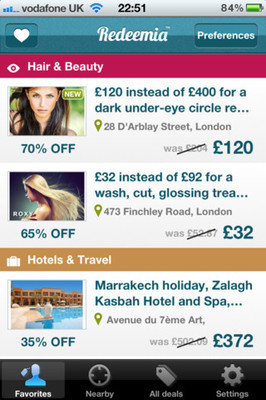 刚来的时候订阅了好多团购信息,像什么groupon/Wowcher/Secret Escapes等等。不过自从有了Redeemia后就好多了,因为只要去一个地方就可以集中看啦。Redemia是把各大网站的团购都集合在一起,方便又可以不错过任何一条优惠。