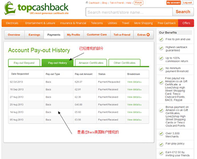 TopCashback的返利力度大于Quidco,特别是对于那些网购的产品来说。所以童鞋们如果是网购的话还是建议TopCashback。