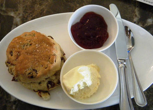 奶油茶是德文郡和康沃尔郡的传统食品,在英国的各类茶馆和咖啡店都有售。奶油茶通常由红茶、司康(烤饼)、草莓酱以及凝固的奶油组成。如果您在不同的地方 品尝奶油茶,会注意到细节上略有不同。比如,在德文郡,习惯把草莓酱抹在热的司康上,然后再抹上奶油。而在康沃尔郡,一般则是先抹奶油。尽管传统的奶油茶 是作为下午茶侍奉,但是只要你乐意,随时都可以去享用。