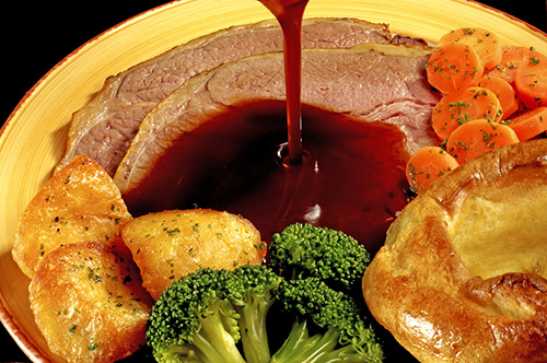 烤肉大餐,或称星期日烤肉,是传统的英式大餐,只在星期日供应。如果适逢圣诞节,则更加隆重丰盛。烤肉大餐一般包括烤肉(如羊羔肉,牛肉,鸡肉和猪肉),烤土豆和各种蔬菜,还会配以约克郡布丁和各种风味的肉汁。英国许多酒店和餐厅都在每星期 日供应烤肉大餐,您不妨移步那里享用这一传统的星期日午餐。