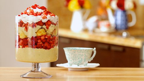 英式查佛(Trifle),象布丁一样,是英国的传统甜品,通常由水果,蛋糕或是饼干,custard,奶油一层一层做成,层层叠叠就是Trifle的最大特点,此外,用甜酒比如雪利酒淋泡过的蛋糕或是手指饼,也是Trifle的独特之处。水果的清甜加上美酒的香醇,算是非常独特的甜品。除了那些英国人离不开的烤豆、鱼和炸薯条外,英式香肠外,这个很英式的Trifle算是英国人最离不开的甜点了。