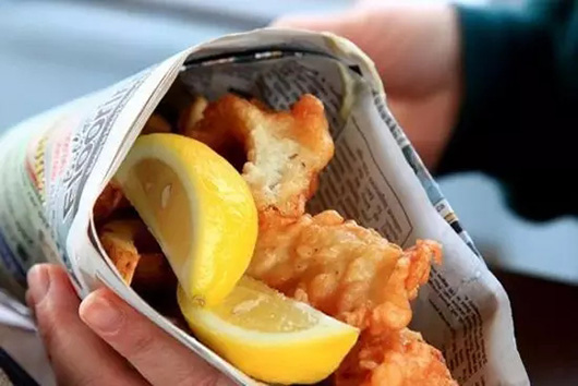 听说在英国,最早选用包薯条的报纸一定是当天的泰晤士报,这样就可以一边吃着炸鱼一边看报纸了。当然,现今的薯条早已经改用干净的白纸或者纸盒装。由于“炸鱼和薯条”新鲜美味,热气腾腾,又方便快捷,几百年来,“炸鱼和薯条”就在英国成为雅俗共赏,老少皆宜的一道美食了。不过,有的英国人把他们当作一顿饭,而有些人就只是把薯条当作餐前小点和零食。