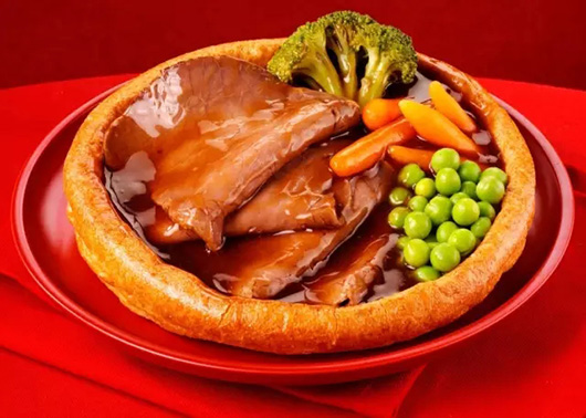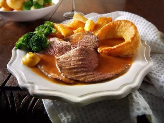 在英国,任何一家有档次的餐厅在供应传统菜周日烤肉时,都不会少了约克郡布丁。虽然它以英格兰北部的约克郡命名,但英国很多郡都争相宣称他们才是这一美食的发源地,因此约克郡布丁的来源至今仍是个谜。约克郡布丁并不是我们想象中的那种布丁,它更像是一种面包,口感也类似软面包,味道略带咸,呈咖啡杯的形状,中间凹陷及绵软,外围则香脆。