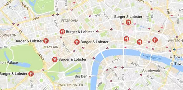 Burger&Lobster 在伦敦目前共有九家,成立(2011年)短短几年的它,就把分店开到了曼城,巴斯,纽约,斯德哥尔摩,迪拜,科威特,吉达,“网红”餐厅看来也不是浪得虚名。